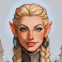 На картинке изображена девушка в стиле фэнтези с золотистыми косами, голубыми глазами и заостренными ушами, выдающими эльфийские черты. На её лице нейтральное выражение, она одета в серебряные доспехи, украшенные золотыми деталями и высоким воротником. На груди доспехов – символ звезды.