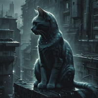 На картинке – кот, устроившийся на узком выступе в городском переулке. Он сидит прямо, прижавшись спиной к стене и глядя вдаль. За ним возвышаются обветшалые дома, их фасады хранят следы времени. Переулок тесен, по стенам тянутся трубы и провода, создавая ощущение отчужденности. На выступе, где сидит кот, видны капли дождя, что говорит о недавнем ливне. Никого нет поблизости, что добавляет уединенности этой сцене. Освещение приглушенное, цвета приглушены, много теней – похоже, вечер или пасмурная погода.