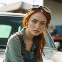 рыжие волосы | Red-haired | Автомеханик женского пола в защитных очках