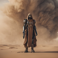 пустыня | Красивые авы с пустыней | Desert | Воин-робот в капюшоне с передовым вооружением