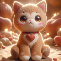На картинке изображён стилизованный, анимированный кот с большими, выразительными глазами и шерстью, напоминающей бенгальскую. Кот сидит на земле, похожей на песок или грязь, окружённый камнями, а на животе у него сердечко. Фон предполагает открытое пространство с каменными образованиями и, кажется, солнечным светом, пробивающимся сквозь трещины в скальной породе и освещающим мордочку кота. Цветовая гамма тёплая, с преобладанием землистых тонов и мягким освещением, что придает сцене ощущение спокойствия и некоторую сюрреалистичность.