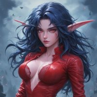 синие волосы | Blue hair | Фэнтезийная героиня с голубыми волосами в красном облегающем наряде