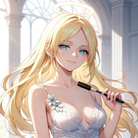 Картинка изображает стилизованную иллюстрацию юной девушки с светлыми волосами, больше похожую на персонажа мультфильма, а не на фотографию реального человека. На ней платье без рукавов, с полупрозрачной текстурой, поверх более светлого белья. Выражение ее лица нейтральное, и кажется, она смотрит прямо на зрителя. На заднем плане видны архитектурные элементы, напоминающие классические колонны, и, возможно, цветы или кустарники. Стиль иллюстрации перекликается с аниме или цифровым искусством, часто используемым в манге или видеоиграх.