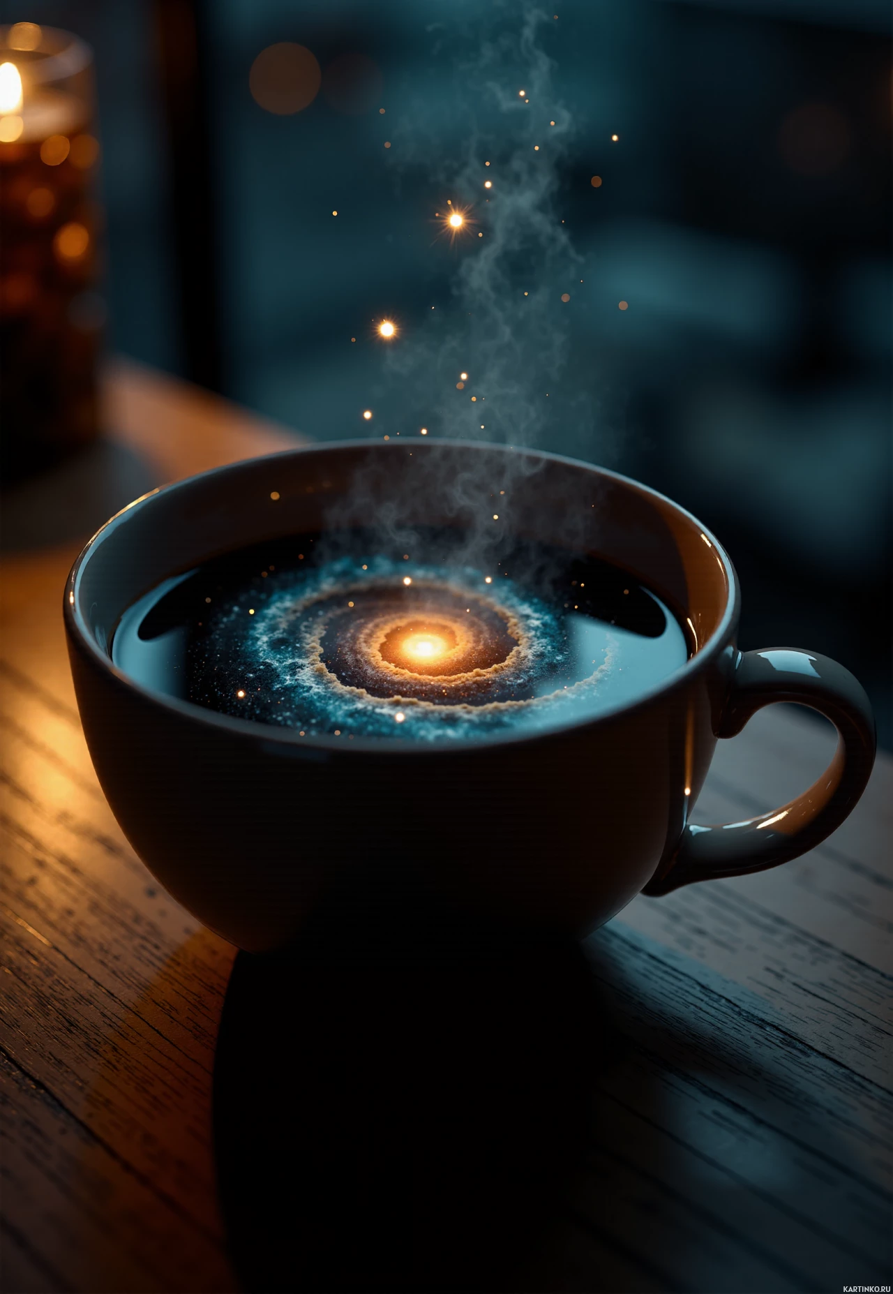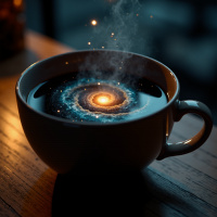 cosmic wonder, as if the coffee has been infused with the essence of the universe. In addition to