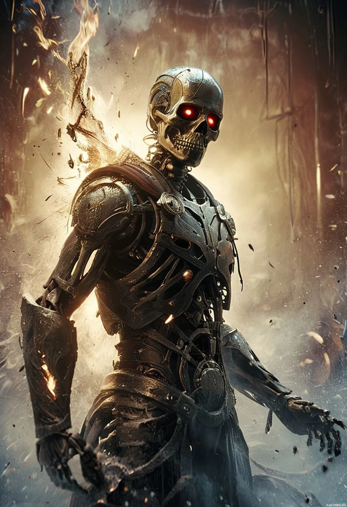 Концепт-арт в стиле темного фэнтези с роботом-скелетом Больше картинок по схожим темам