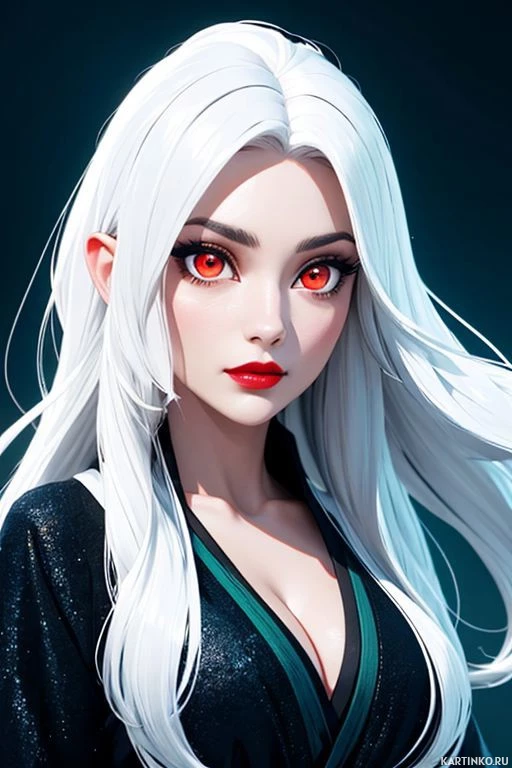 белые волосы | White hair | Фэнтезийный персонаж с яркими красными глазами