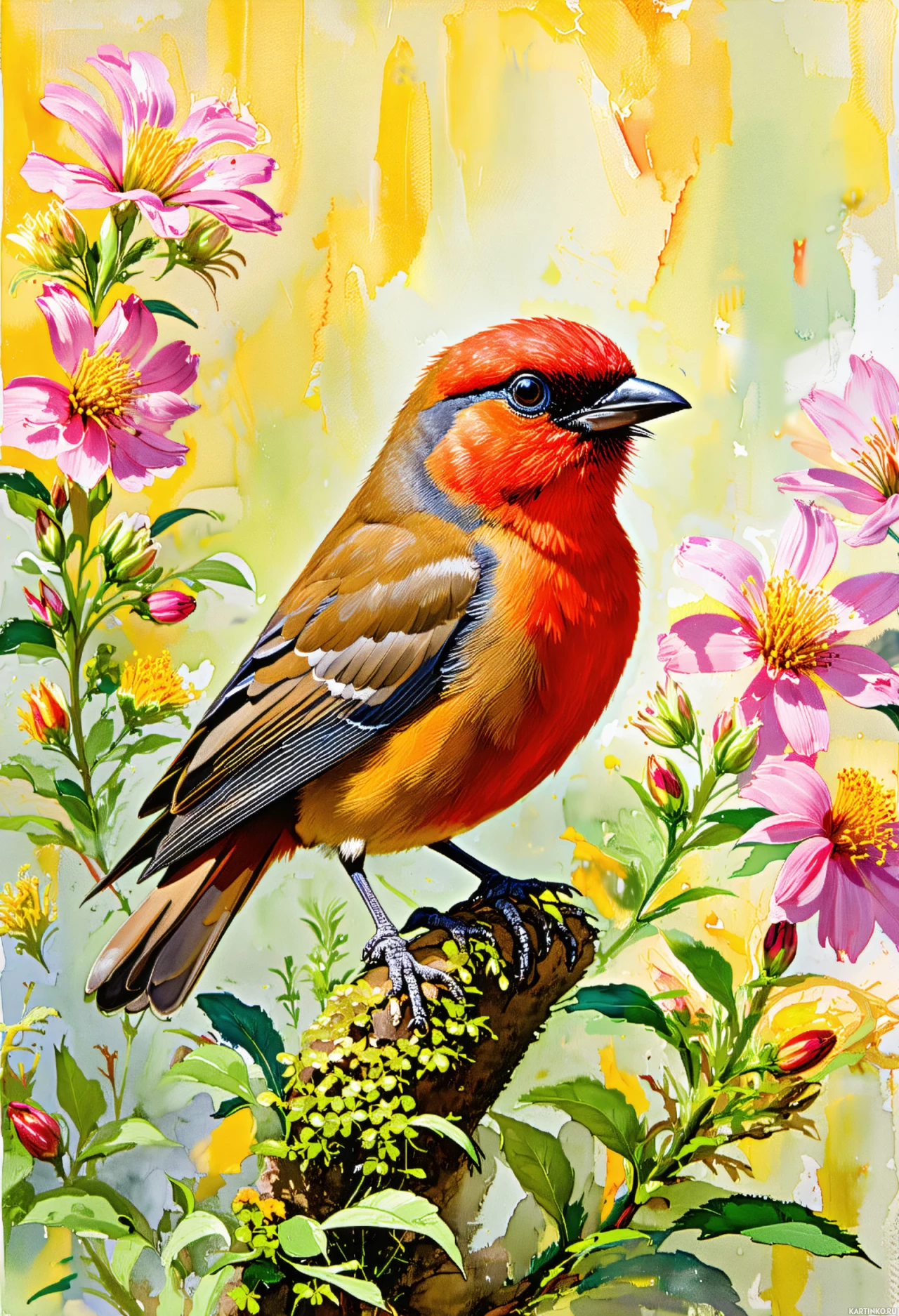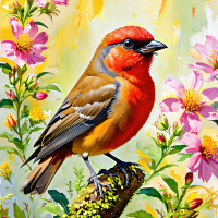 Картина с изображением певчей птицы среди цветов Больше картинок по схожим темам