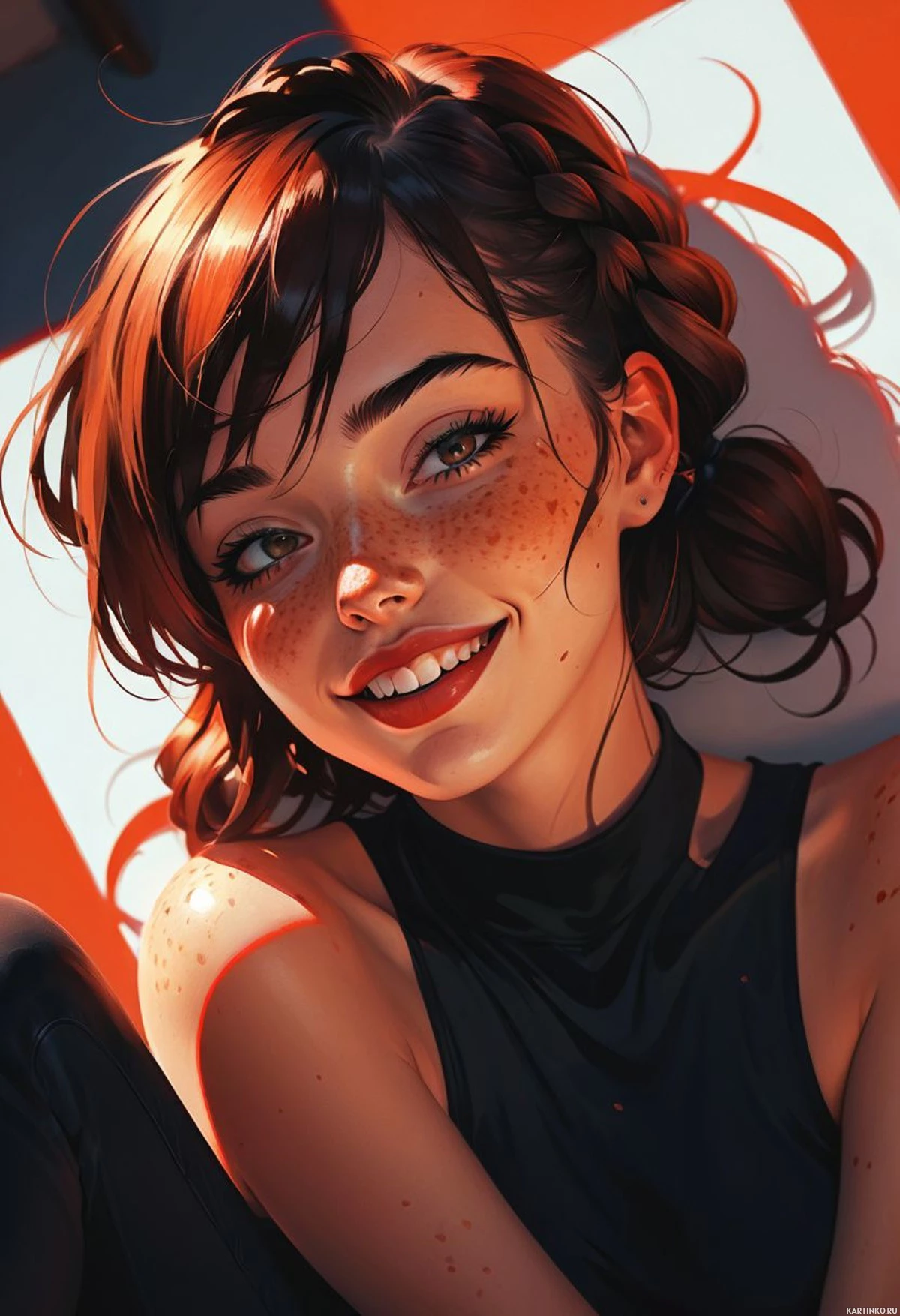 Девочка-мультяшка с веснушками и яркими губами Больше картинок по схожим темам