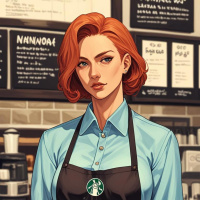 кофе | Скачать аватары с кофе | Coffee | Женщина с рыжими волосами в рабочей одежде