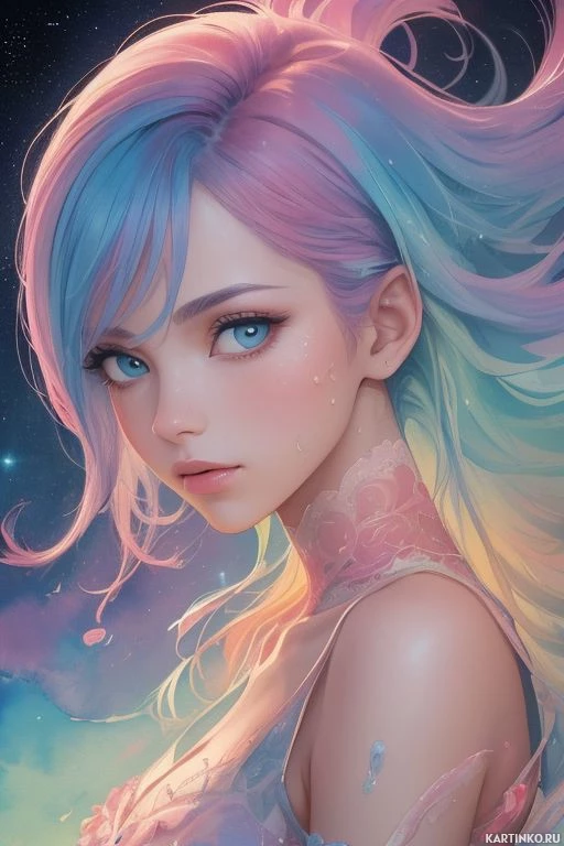 Девушка с розовыми и голубыми волосами Картинки с такими же тегами