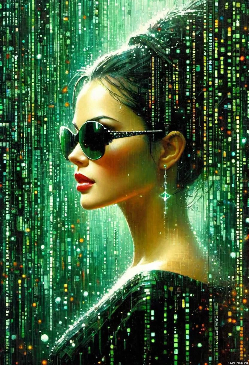 Футуристическая картина девушки на фоне кода Картинки с такими же тегами