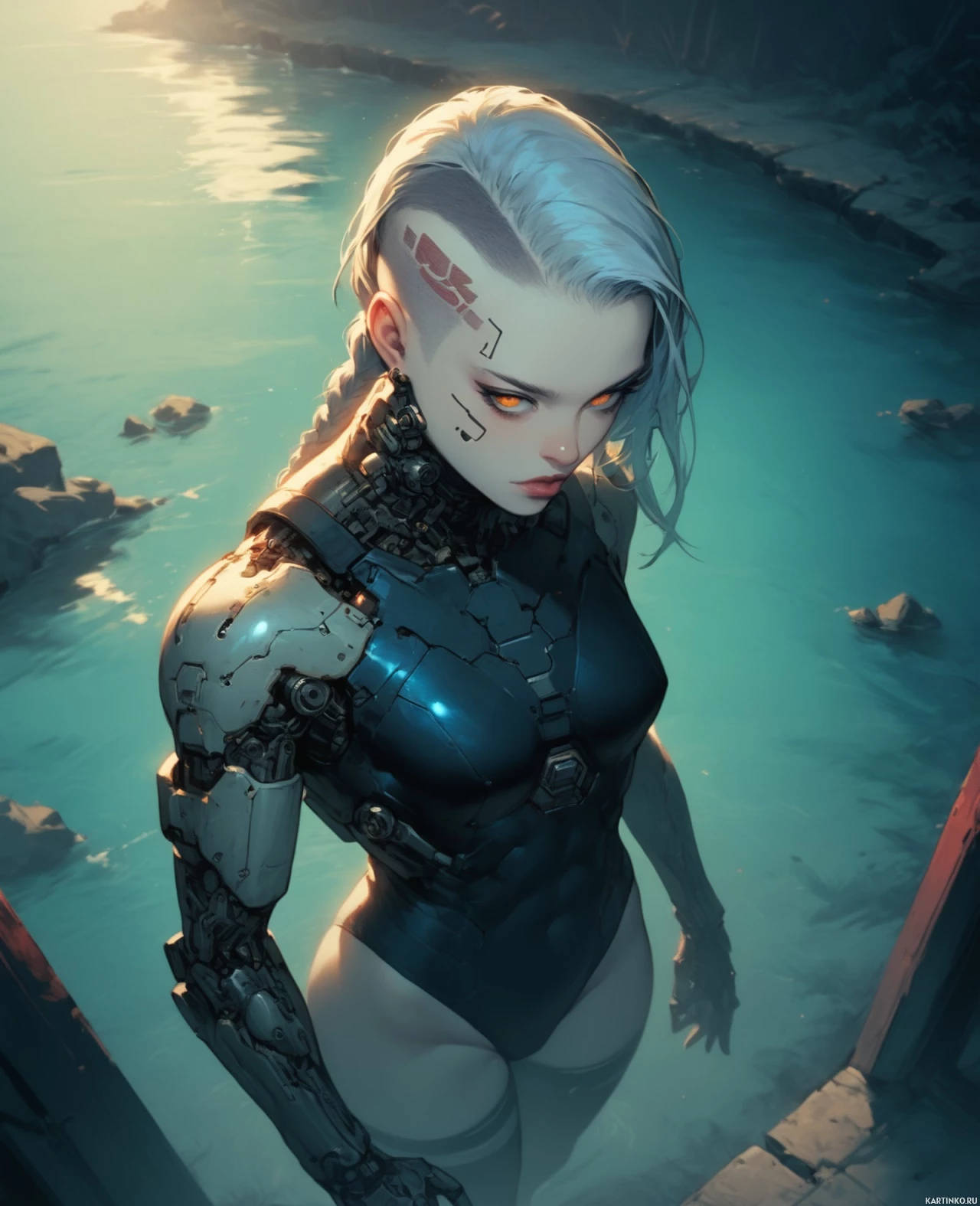 вода | Скачать аватары с водой | Water | Девушка с кибернетическими улучшениями и белыми волосами