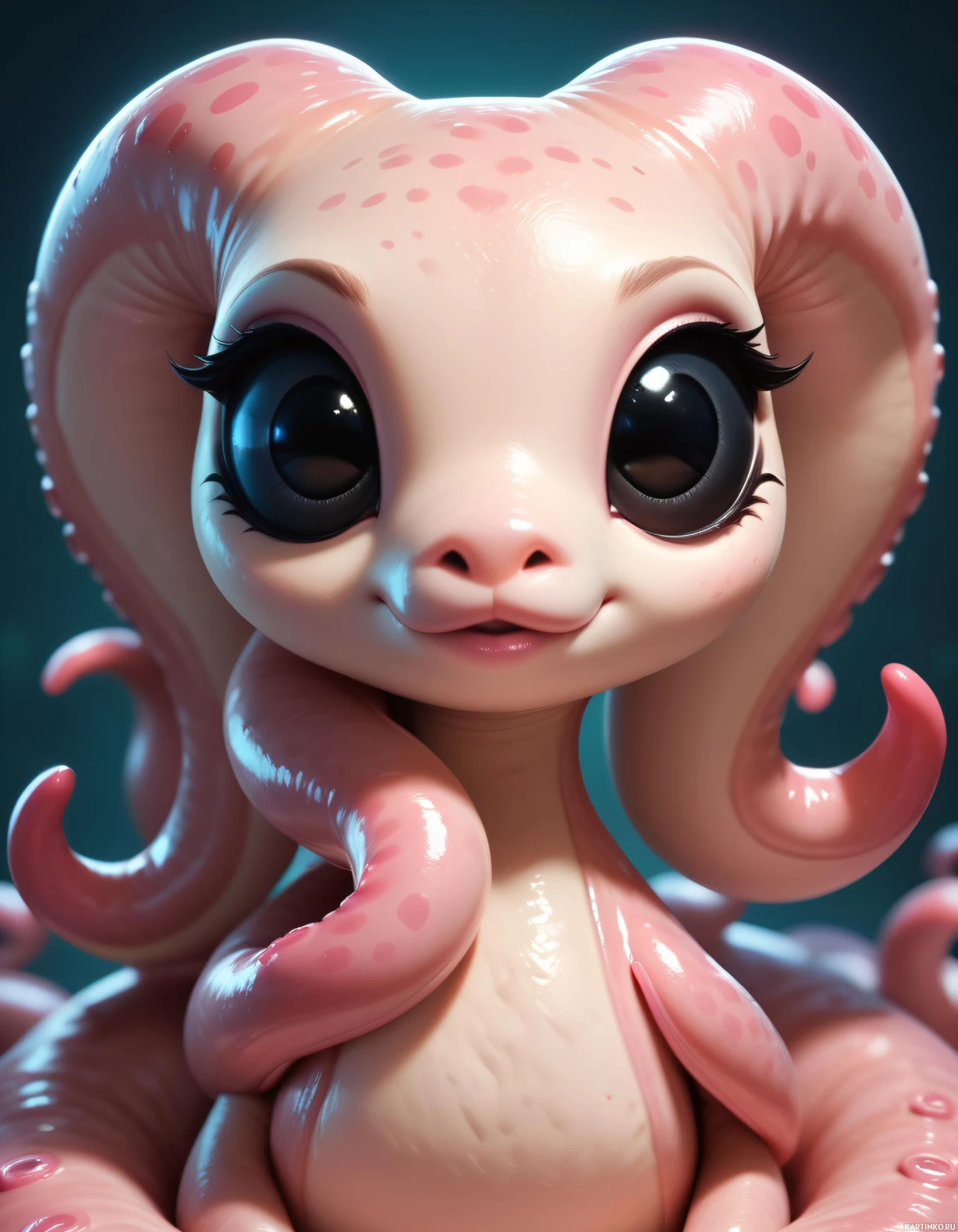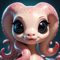 long tentacles hanging from its neck, suggesting a fantasy take on an octopus or similar creature. The colors are soft and the overall feel of the image is playful and endearing. This type of artwork is often associated with the "kawaii" or cute subculture in