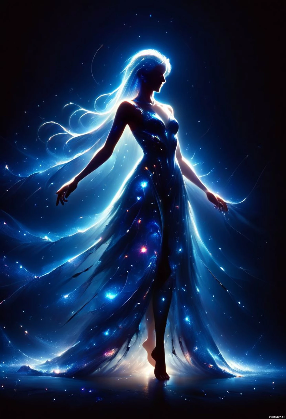 платья | Скачать аватары с платьем | Dresses | Фантастическое изображение танцовщицы на фоне звездного неба