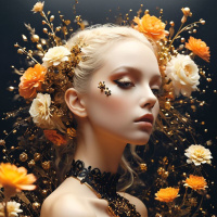 цветы | Скачать аватары с цветком | Flowers | Женщина с светлыми волосами в золотых и оранжевых декоративных цветах