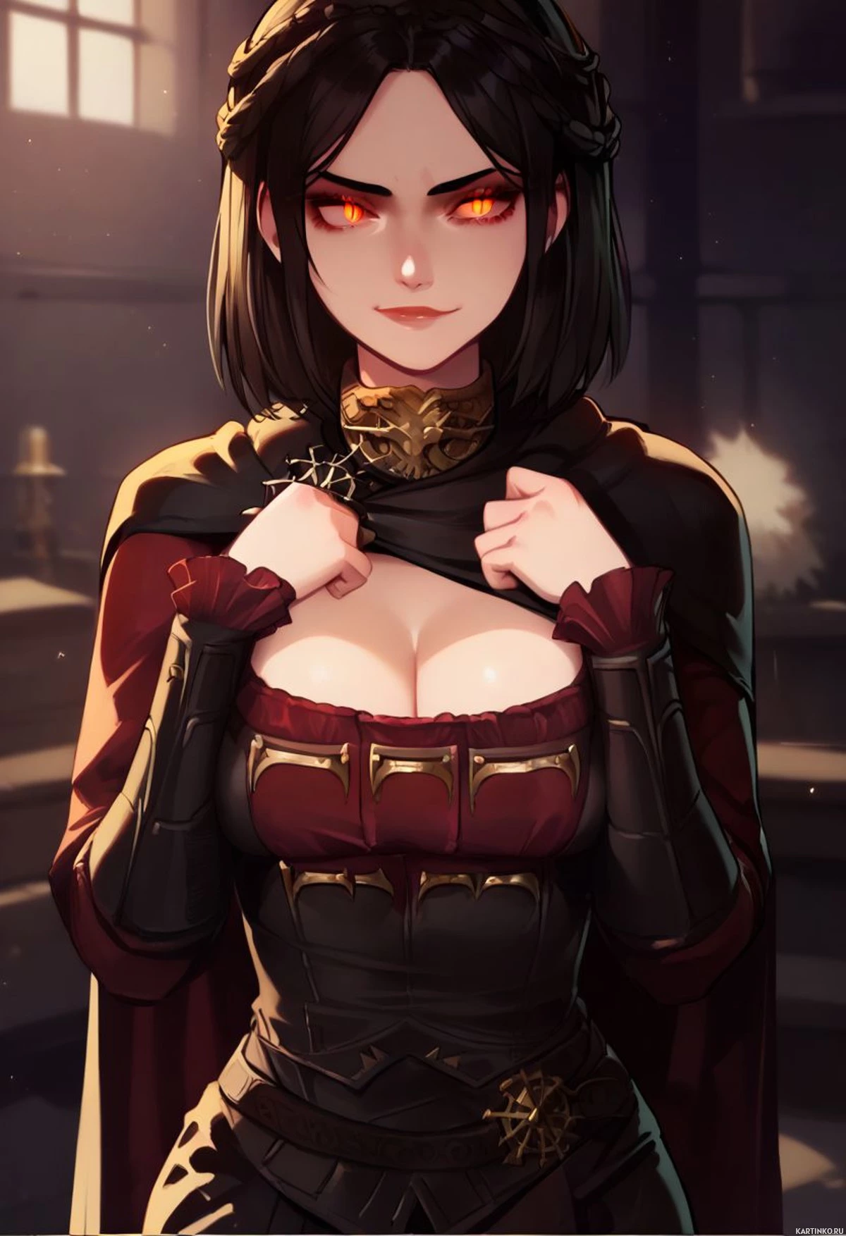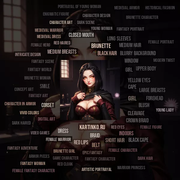 брюнетки | Скачать аватары с брюнеткой | Brunettes | Иллюстрация средневековой девушки в боевой экипировке с красными глазами