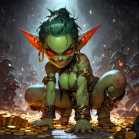Жадные глаза вымышленного гоблина на его золотой сокровищнице Картинки с такими же тегами