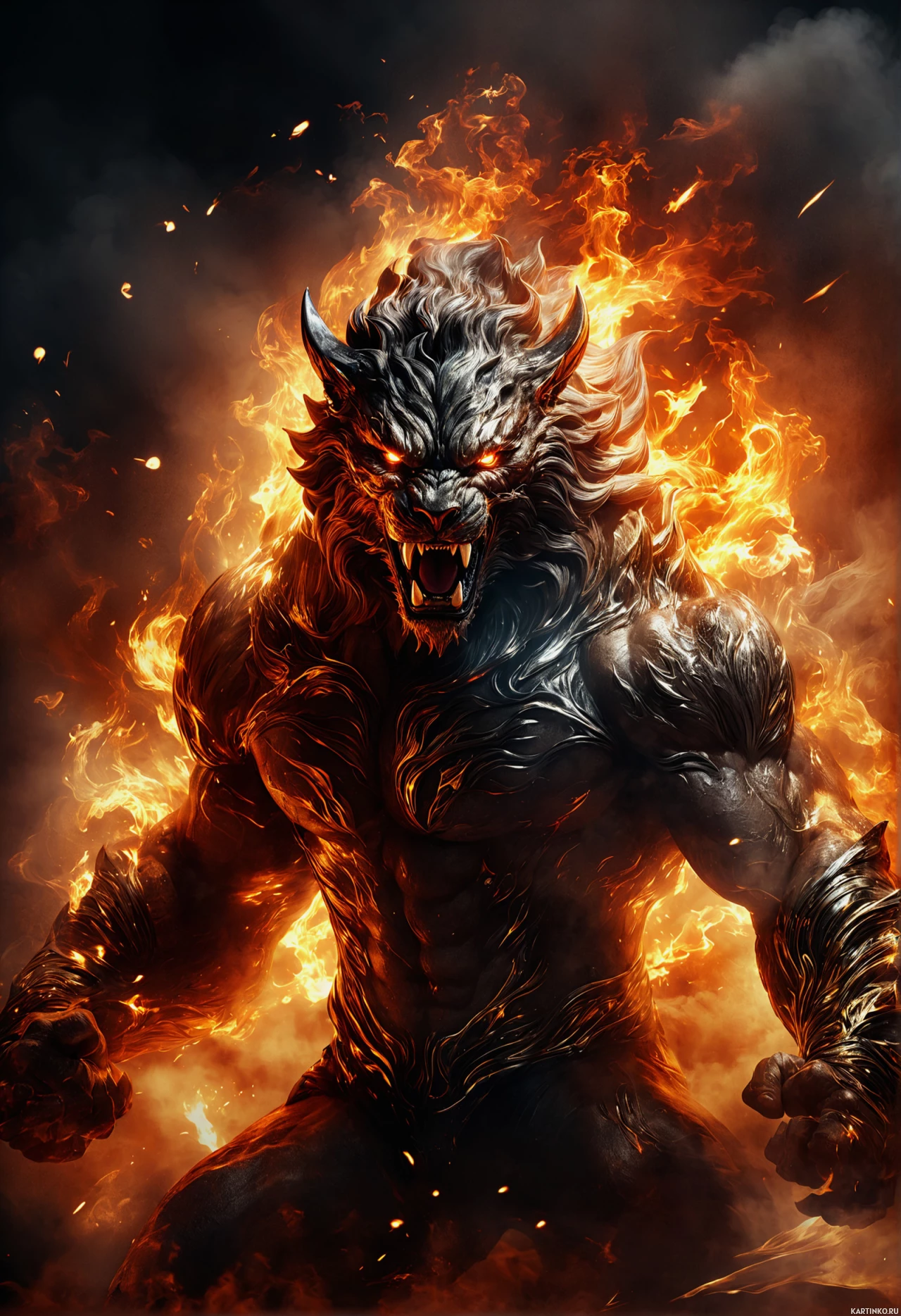 Существо с звериными чертами в самом сердце огня Картинки с такими же тегами