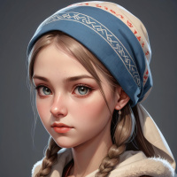 traditional costume. The outfit includes a collar and what seems to be a belt or waistband at the bottom, which might serve as part of her clothing ensemble. Overall, the image is likely intended to portray a character from a historical setting or fantasy scenario, given the detailed representation of both the attire and the headdress.
