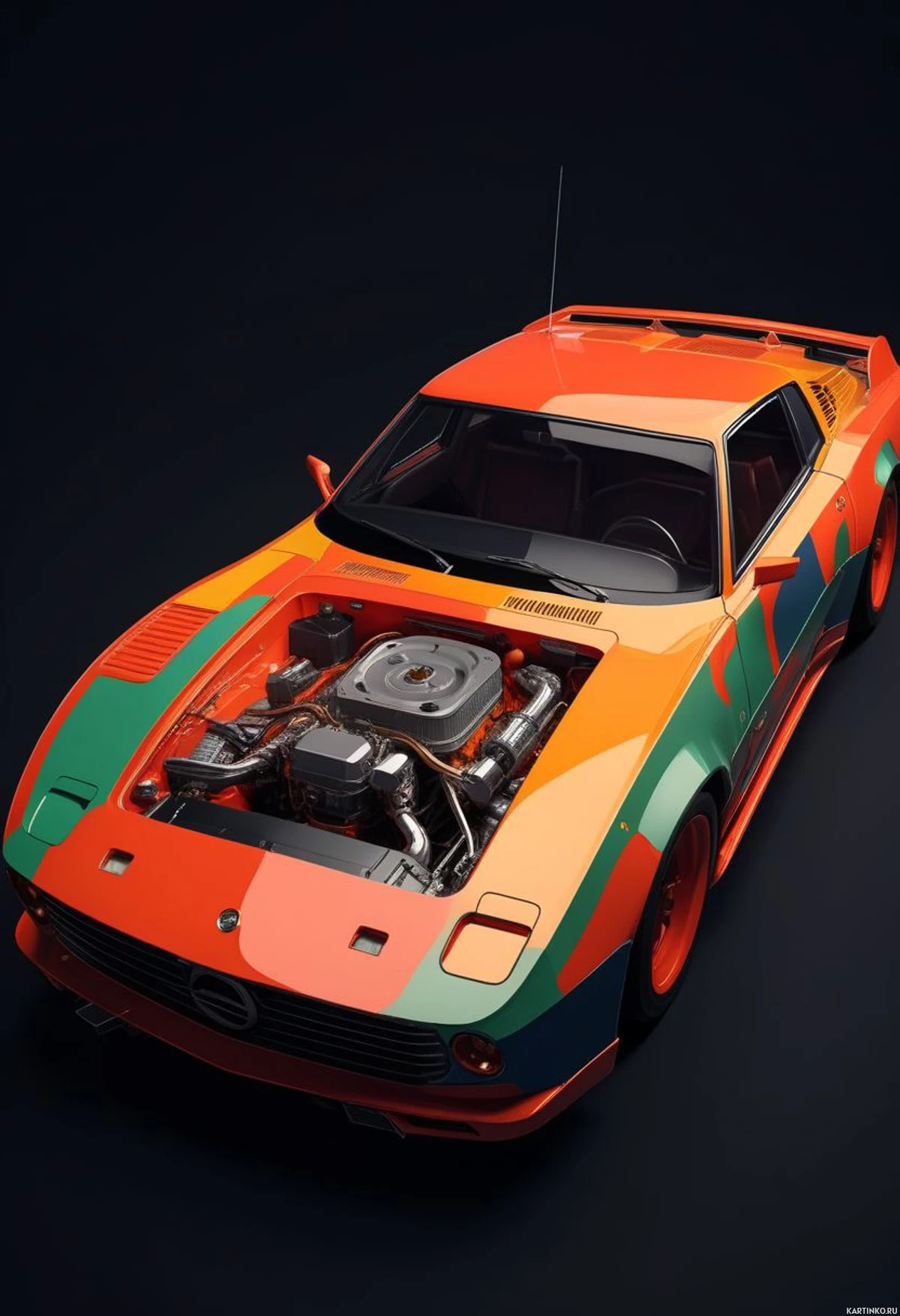 various parts of the vehicle's body. The engine cover is left open, revealing