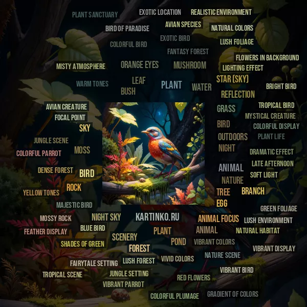 art genre. The presence of the bird as the central figure adds life and movement to the scene.
