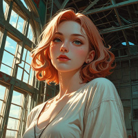 На картинке изображена молодая женщина с короткой стрижкой, у которой, кажется, окрашены корни волос в красный цвет, что придает ей форму боба. У неё светлая кожа, и она смотрит в сторону с нейтральным выражением лица. Макияж у неё легкий и естественный, подчеркивает черты без излишней драматичности. На ней бежевый топ, который выглядит довольно свободным, создавая ощущение непринужденности. Она стоит перед старой конструкцией, похожей на мост или эстакаду, характеризующейся видимыми металлическими балками и трубами, обрамляющими фон. Место действия предполагает городскую среду, возможно, рядом с водой или в индустриальной обстановке, из-за конструкции, напоминающей мост. Освещение на картинке яркое и равномерное, что говорит о солнечном дне без резких теней. Композиция помещает её немного в левую сторону от центра, что создает интересный баланс между её фигурой и архитектурным фоном. Использование естественного света и простота наряда способствуют ощущению спокойствия и современности.