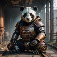 level of detail and shading that gives it a realistic appearance despite the fantastical concept of a panda in armor.