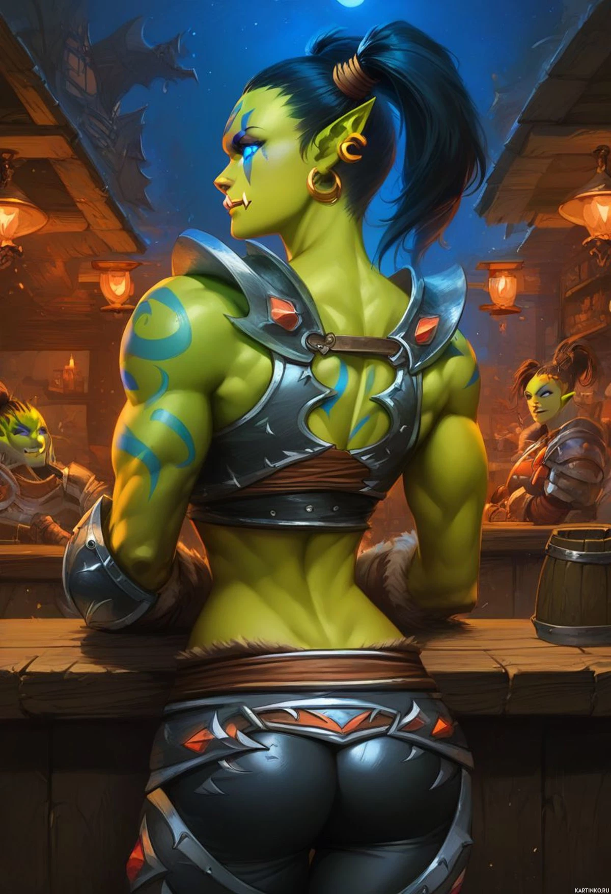 сзади | From behind | Фэнтезийное существо, изображенное в образе орчихи
