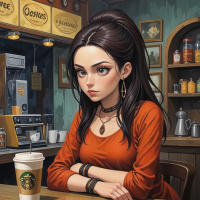 Иллюстрация в стиле комикса: профиль девушки в кофейне Картинки с такими же тегами