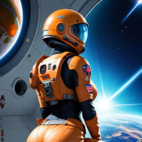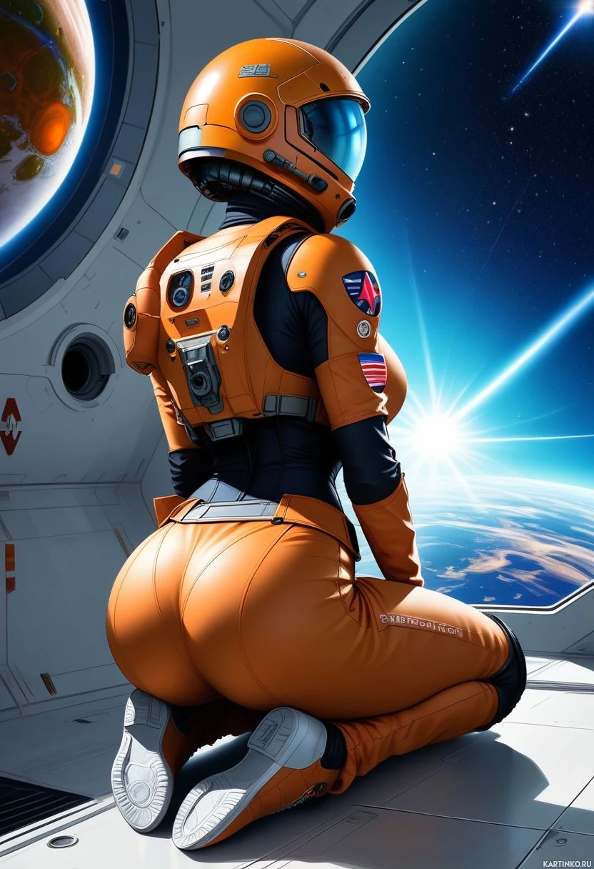 Космонавт в оранжевом скафандре сидит на палубе Картинки с такими же тегами