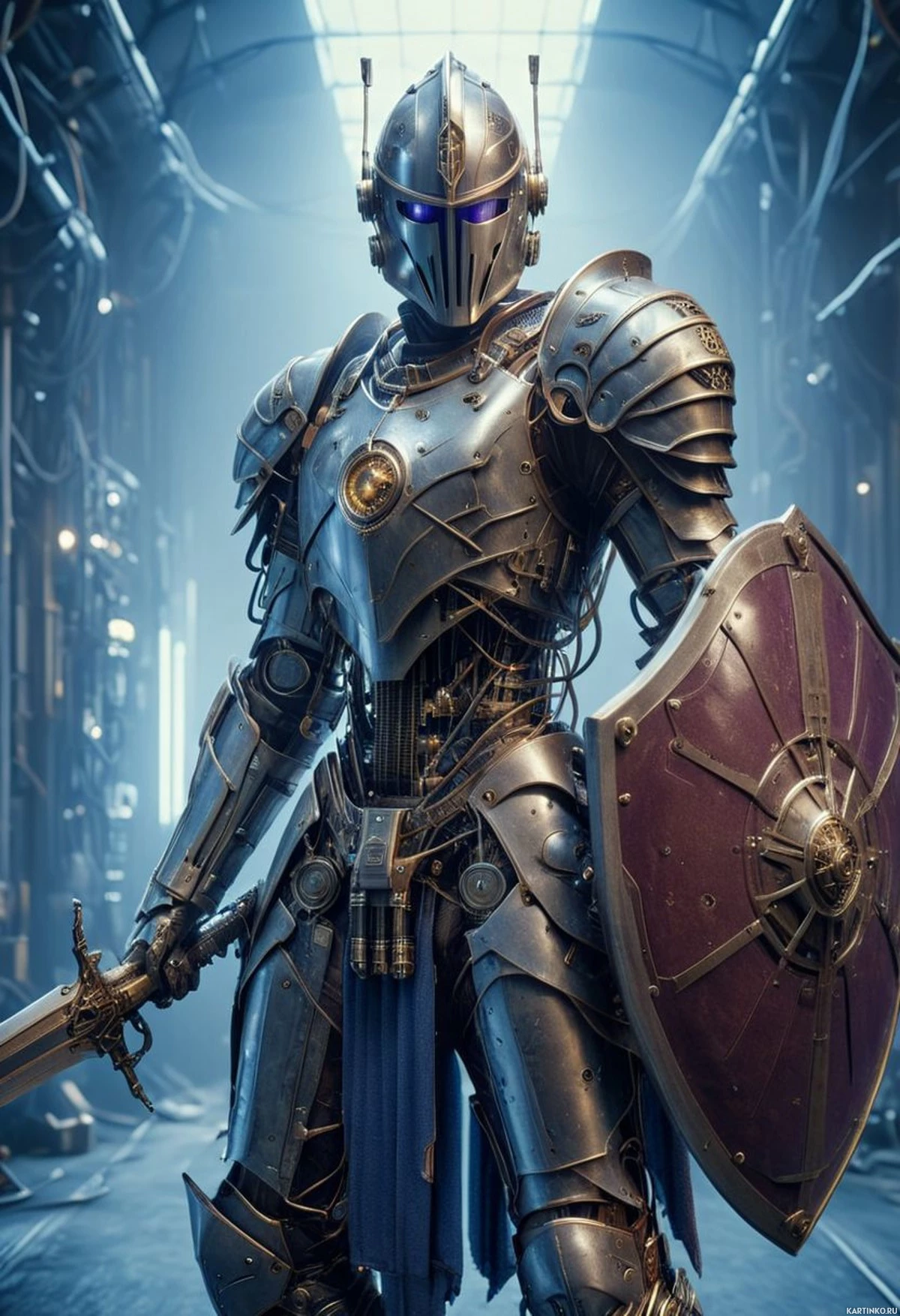 фэнтези | Фотки и рисунки с фэнтези | Fantasy | Роботизированный герой с мечом и щитом