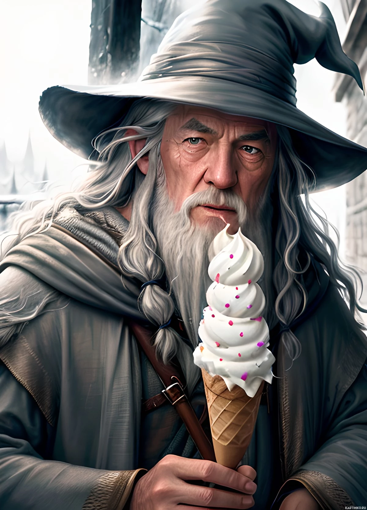 The image depicts a character known as Gandalf from the Middle-earth