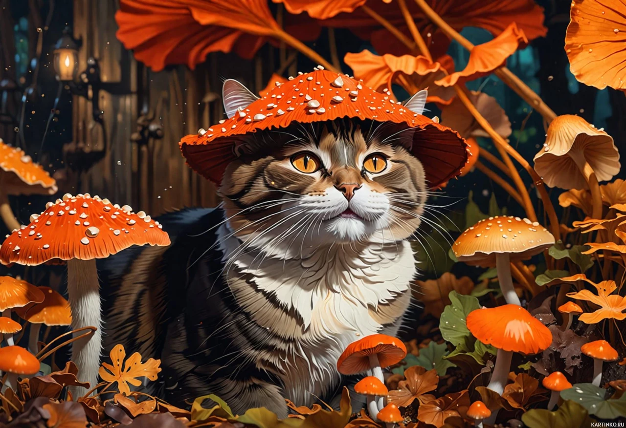 коты | Фотки и рисунки с котом | Cats | В лесу, полном грибов, поселился кот