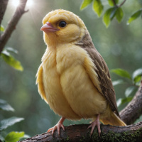 Милый птенец жёлтого цвета радуется солнцу на природе Картинки с такими же тегами