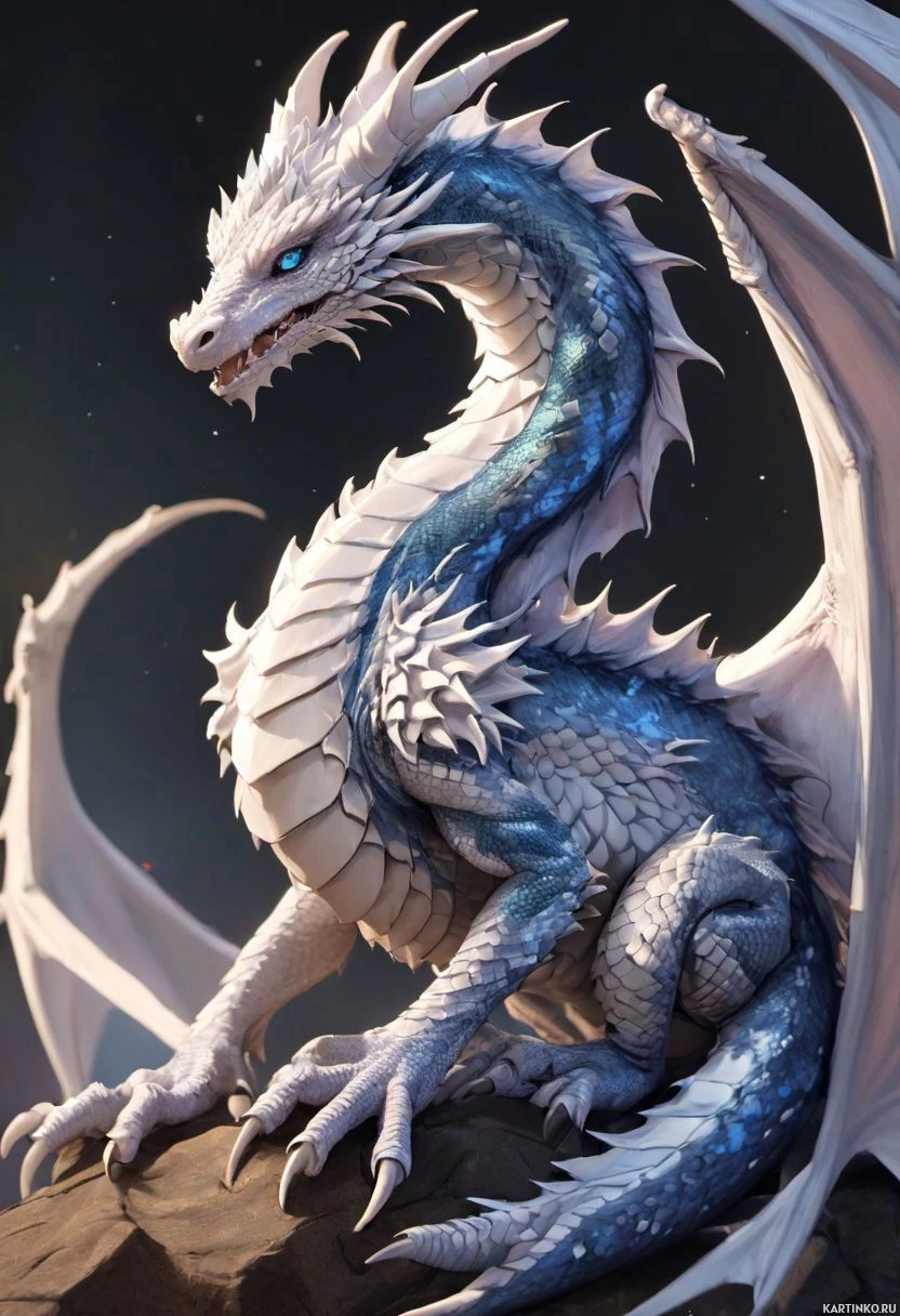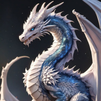 blue scales that give it a somewhat aquatic appearance, with white spikes adorning its shoulders and neck. The dragon's eyes are closed, suggesting