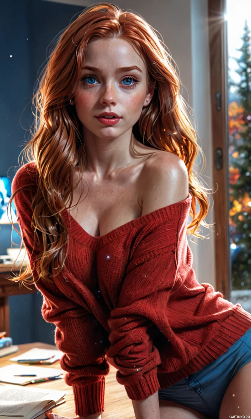 Элегантная рыжеволосая модель в уютном зимнем свитере Картинки с такими же тегами