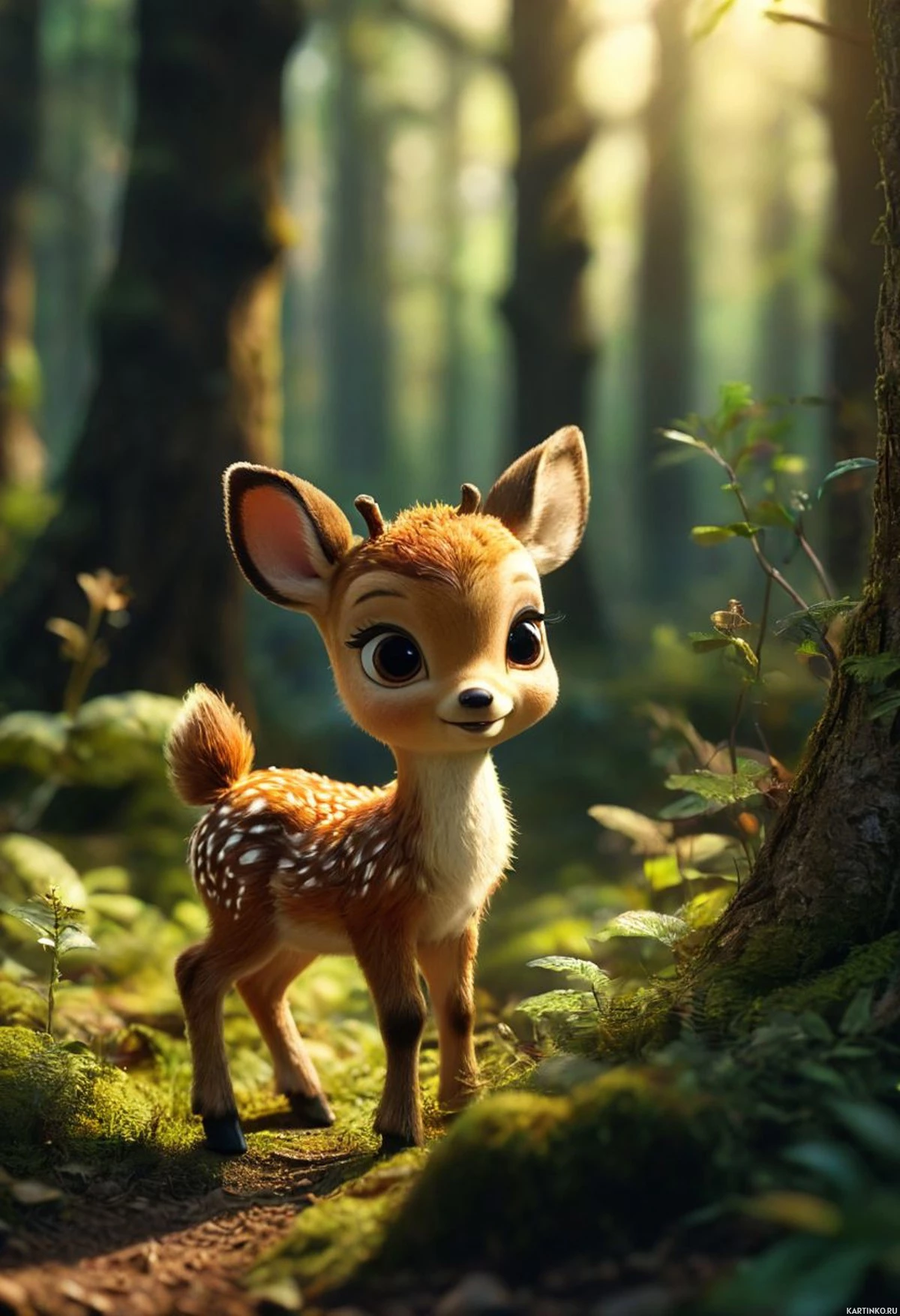 лес | Красивые авы с лесом | Forest | Милый мультяшный оленёнок встречает дикую природу