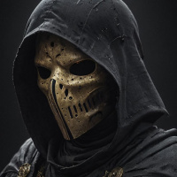 narrative medium. The individual is wearing a hood and a mask that has