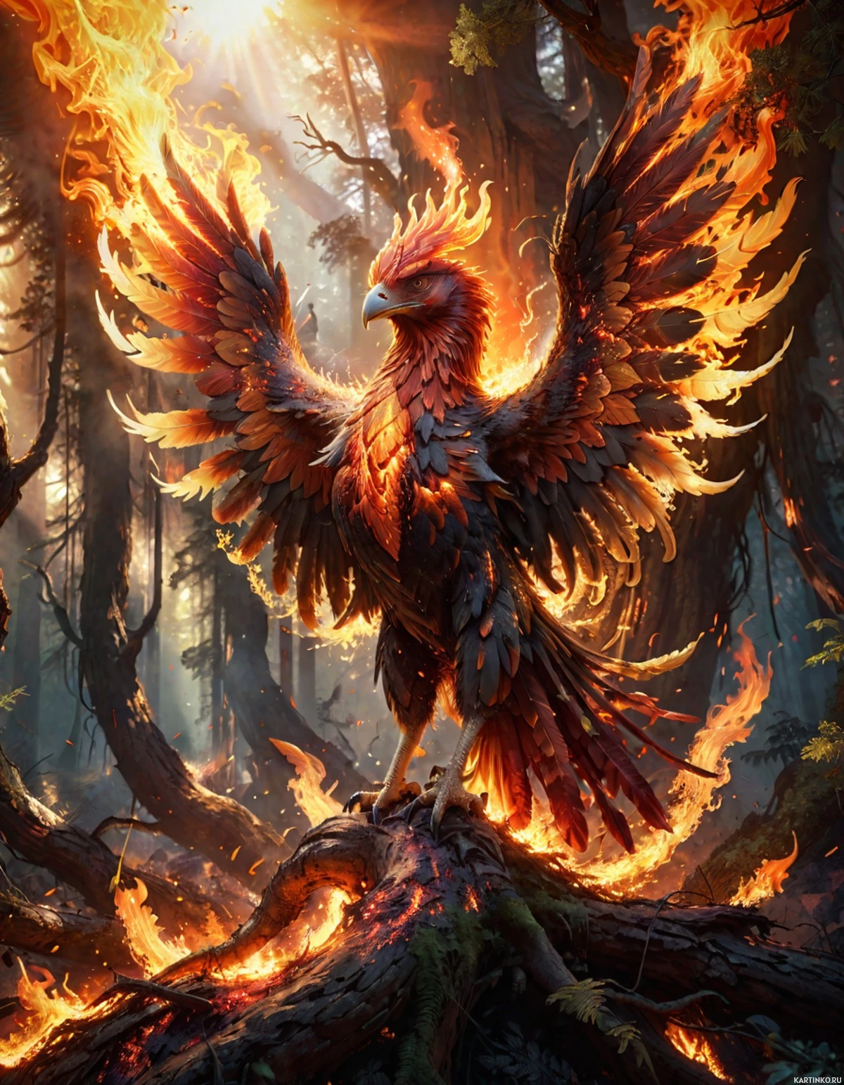 фениксы | Скачать аватары с фениксом | Phoenixes | Величественная птица с огненными крыльями на фоне леса