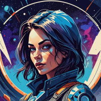 На картинке изображена девушка с голубыми волосами в футуристическом доспехе, сочетающем металлические и органические элементы. На ней шлем с забралом, а на её одежде – нагрудник с каким-то знаком или логотипом. На фоне виден круглый символ, похожий на глаз. В целом, обстановка создаёт научно-фантастическую атмосферу, а выражение её лица говорит о серьёзности.