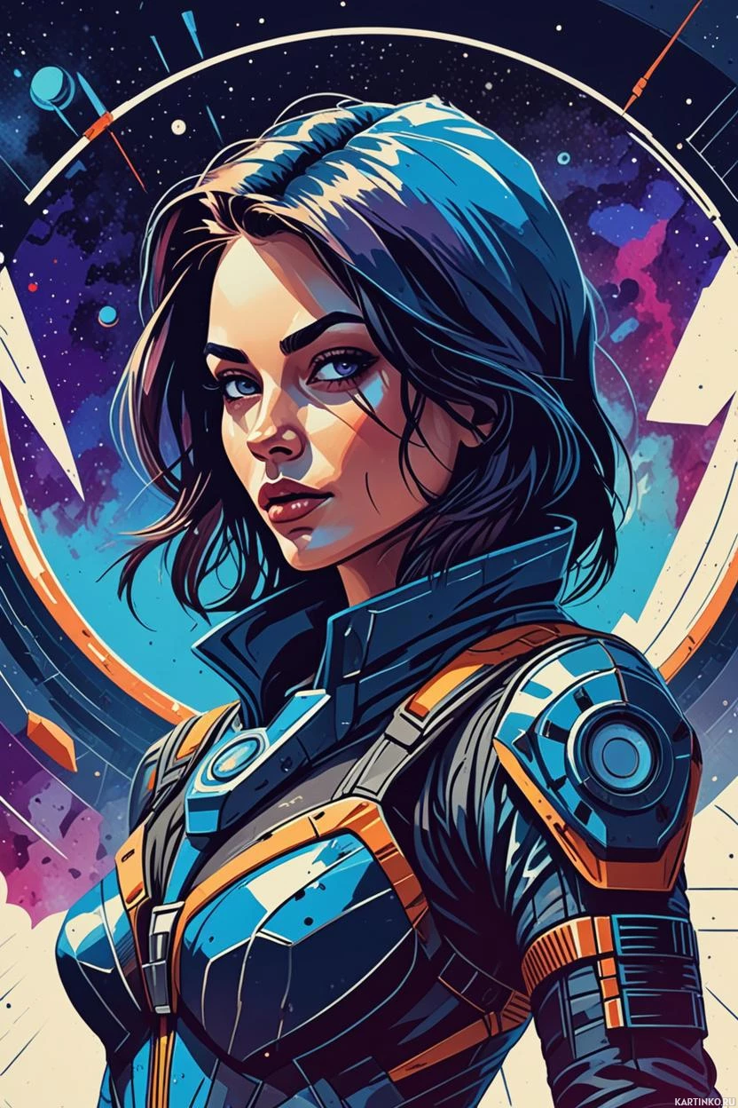 Иллюстрация в стиле киберпанк: девушка в костюме Картинки с такими же тегами