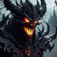 chest area, which may represent the demonic essence or energy. The background appears to be a dark, gothic setting, possibly