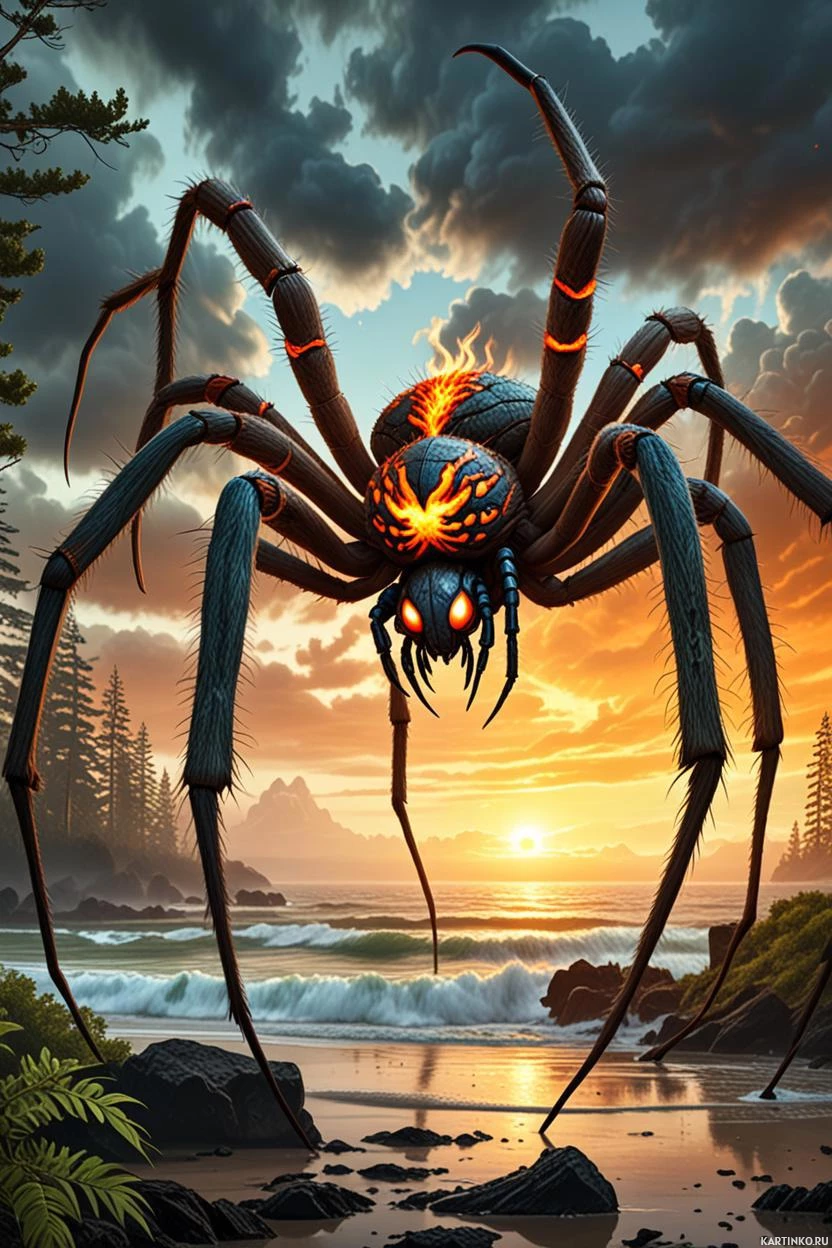 пауки | Скачать аватары с пауком | Spiders | Впечатляющая картина фантастического паукообразного монстра в дикой местности
