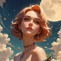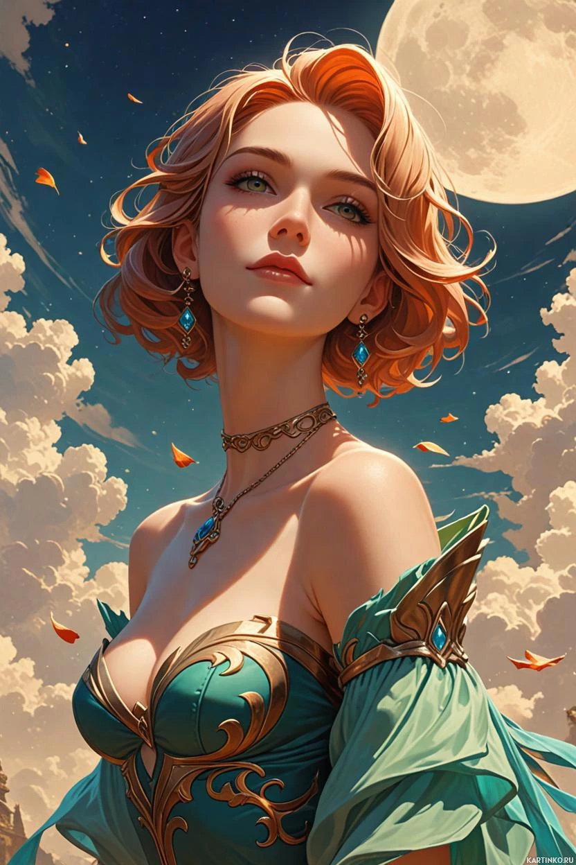 Фэнтезийный портрет рыжеволосой девушки на лунном небе Больше картинок по схожим темам
