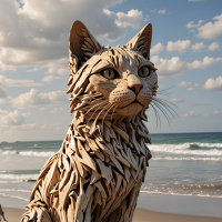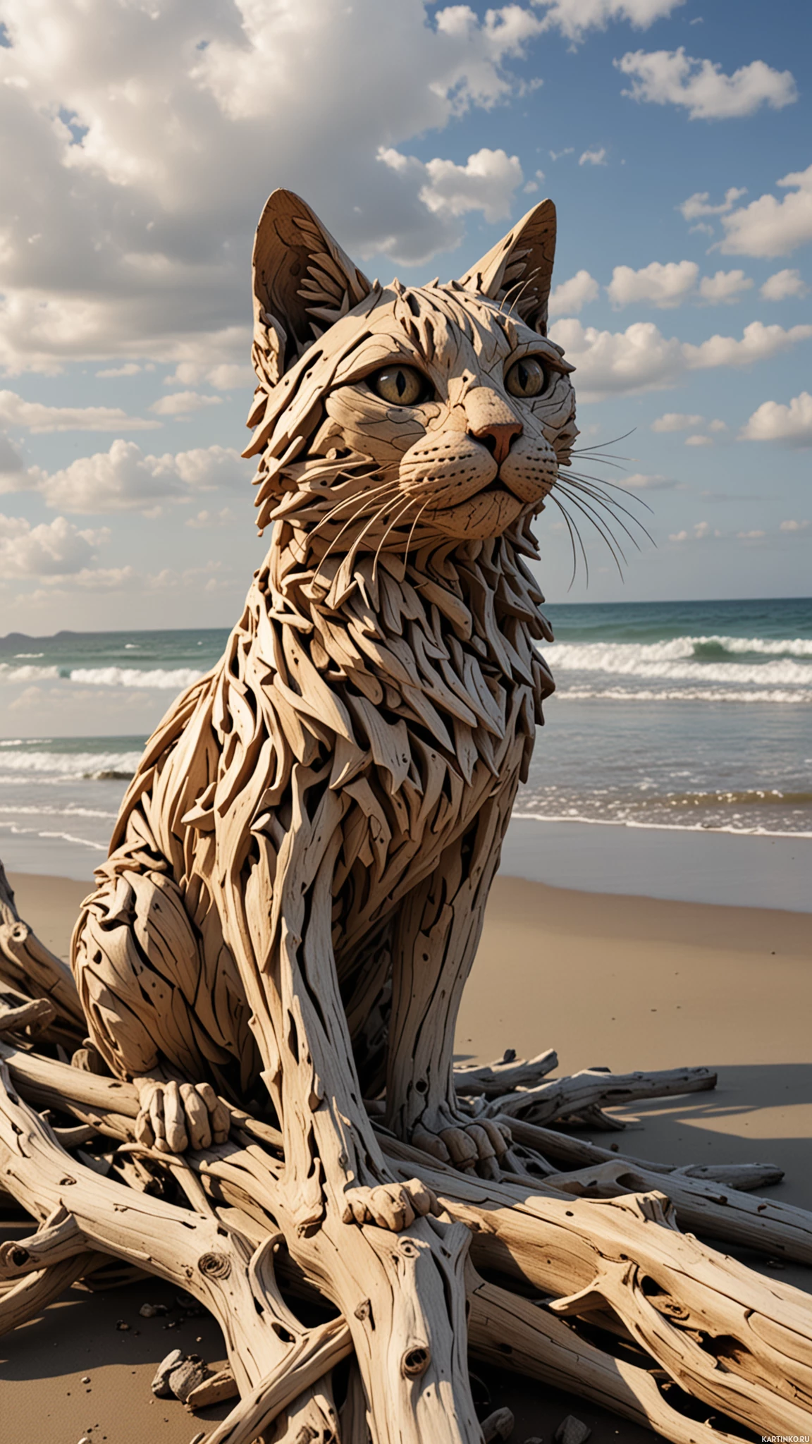 Скульптура кошки из натуральных материалов, затерянная на песке Больше картинок по схожим темам