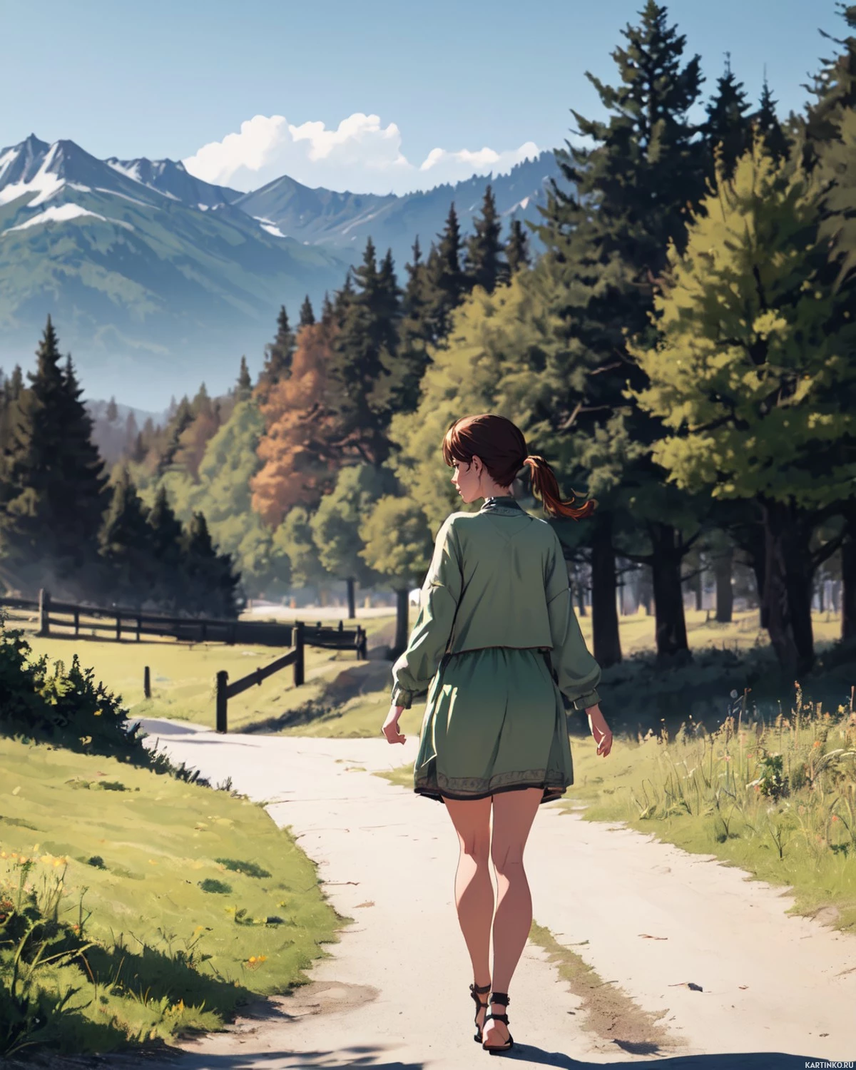 Путешествие девушки по живописной сельской местности Больше картинок по схожим темам
