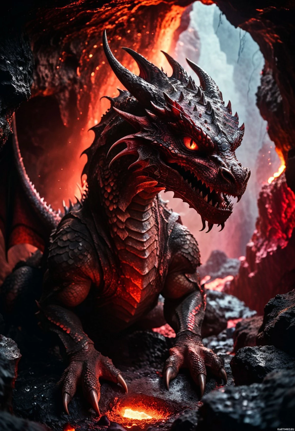 Дракон в огненной пещере, охраняющий сокровище или тайну Картинки с такими же тегами