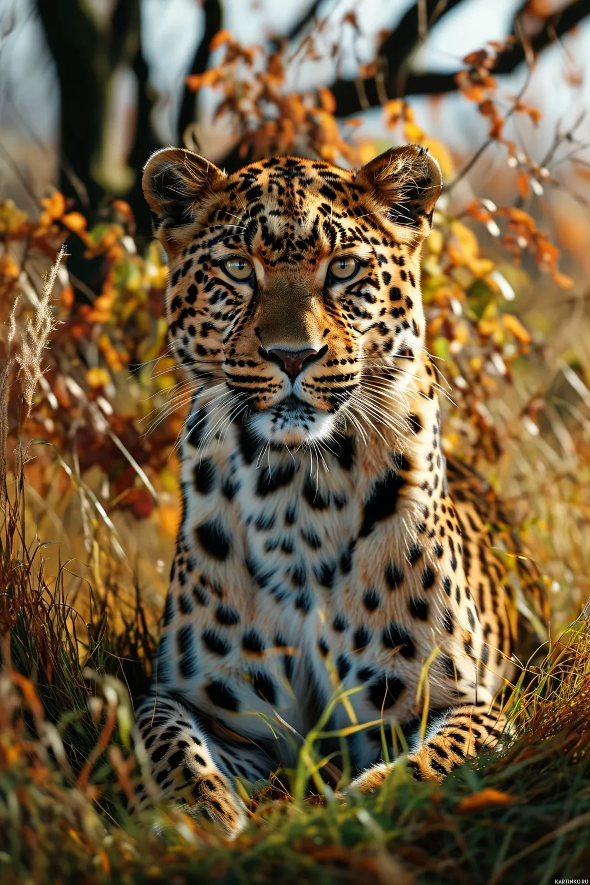 Яркий контраст между леопардом и осенним пейзажем Картинки с такими же тегами