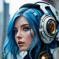синие волосы | Blue hair | Девушка с голубыми волосами исследует киберпространство