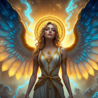 The image depicts a character that appears to be an angel, as indicated by the wings and
